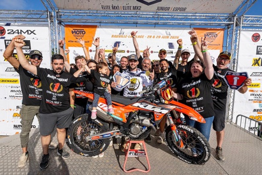 Ce dimanche à Rauville-la-Place, le Team 737 Performance a vécu une journée inoubliable à l’occasion de la grande finale du Championnat de France Élite MX2. Devant un public passionné et sous une belle météo, Mathys Boisrame a scellé une saison exceptionnelle en décrochant le titre tant convoité de Champion de France. Une immense fierté pour toute l’équipe !